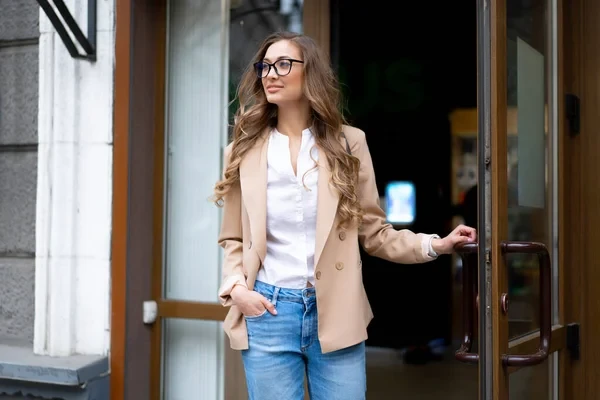 bir pantolon ve sade bir tişört ya da gömlek üzerine önü açık bırakılmış bir