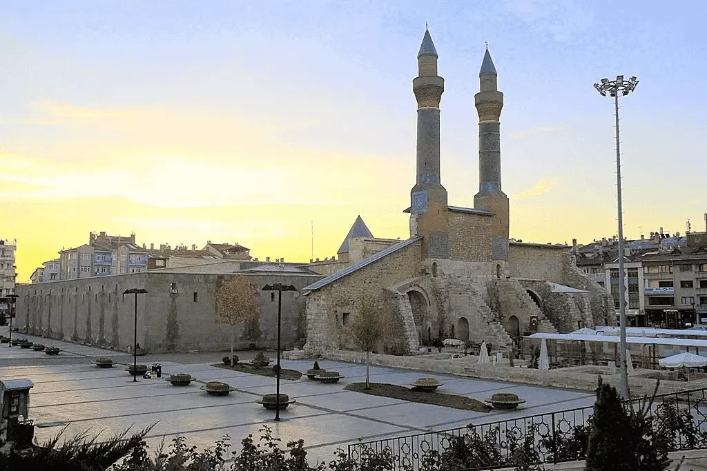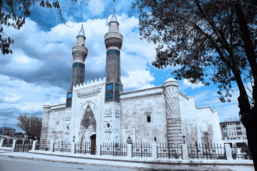 Sivas şehir merkezinde yer alan Çifte Minareli Medrese, Selçuklu döneminin zarif yapılarından biridir. Medrese, 13. yüzyılda inşa edilmiştir ve iki minaresi ile tanınır. Çifte Minareli Medrese, ihtişamlı taş işçiliği ve süslü mimarisiyle tarihi bir yapı olarak Sivas’ın simgelerindendir. Bu medrese, hem tarihsel hem de mimari açıdan önemli bir yapıdır ve ziyaretçilere eski Türk medreselerinin nasıl inşa edildiği hakkında fikir verir.