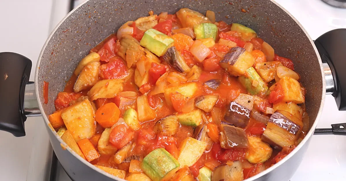 Daha sonra doğranmış kabak ve patlıcan eklenip karıştırılır.
